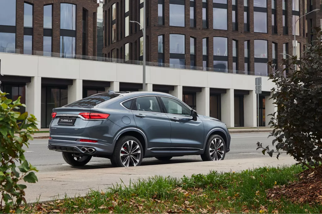 - Geely Tugella доступен в цветах: синий металлик, серый металлик, красный металлик, черный металлик, белый металлик, серо-голубой металлик.
