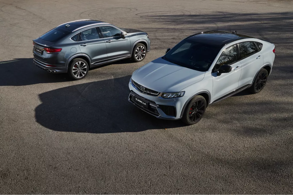 Первый и пока единственный купе-кроссовер от Geely. Стремительные линии кузова и богатый выбор необычных цветов делают модель заметной в потоке. Электроподогрев лобового стекла, премиальная аудосистема, люк, современные мультимедийные возможности, впечатляющая динамика благодаря мощному 238-сильному турбомотору и 8-ступенчатому автомату — все это делает автомобиль хитом среди российских автолюбителей.