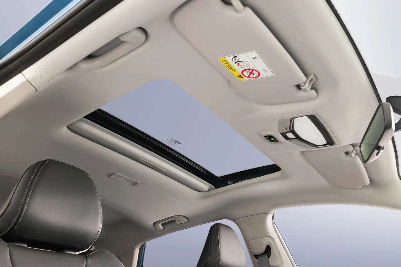 Люк с электроприводом визуально расширяет пространство в салоне над головой, а шторка при необходимости позволит уменьшить попадание прямых солнечных лучей в интерьер.