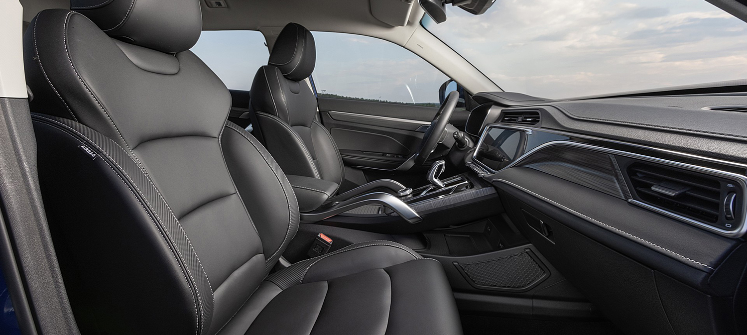 Интерьер02Внутри он выглядит роскошно. Без ложной скромности салон внешне лаконичного и даже брутального кроссовера по уровню дизайна, отделки и оснащения может соперничать с автомобилями более высокого класса. Его струящийся дизайн усиливает ощущение простора, качества и элегантности. Применены современные, дорогие материалы, искусно подобраны текстуры. Высококонтрастный 12,3-дюймовый сенсорный экран мультимедиа, огромная панорамная крыша площадью почти 1,2 кв. м и 42-цветная система атмосферной подсветки, меняющейся в соответствии с режимом вождения, создают приятную обстановку для водителя и пассажиров.