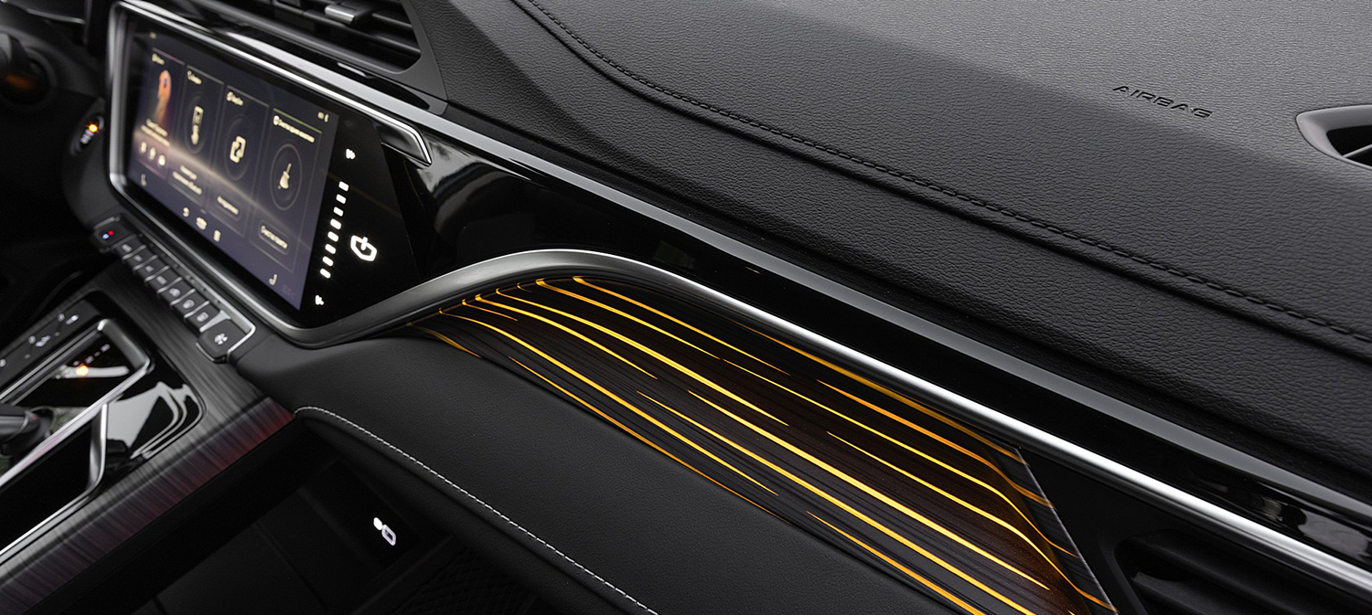 Мультимедиа04Информационно-развлекательная система Atlas Pro – это то, что впечатляет уже при первом знакомстве с автомобилем. Огромный, 12,3-дюймовый цветной сенсорный экран отличается современной графикой, высокой контрастностью (1MP, 720 пикселей), а также способностью реагировать даже на касания влажных пальцев и рук в перчатках. За качественное звучание аудиосистемы отвечают 8 динамиков, а за приподнятое настроение – 42-цветная система атмосферной подсветки салона, которая может работать в такт воспроизводимой музыке.