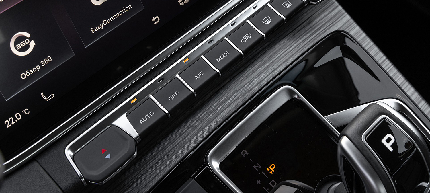 Климат-контроль01Geely Atlas Pro оснащен системой автоматического поддержания заданной температуры в салоне и управления кондиционером. Блок климат-контроля эргономично размещен на центральной консоли под экраном мультимедиа и выполнен на высоком эстетическом уровне - с так называемыми «рояльными» клавишами. Пользоваться ими очень удобно и приятно. Здесь также включаются электрообогрев зоны покоя стеклоочистителей и форсунок стеклоомывателя лобового стекла, зеркал и заднего стекла. Управление функциями подогрева сидений и рулевого колеса в соответствии с современными тенденциями вынесено на мультимедийный экран.