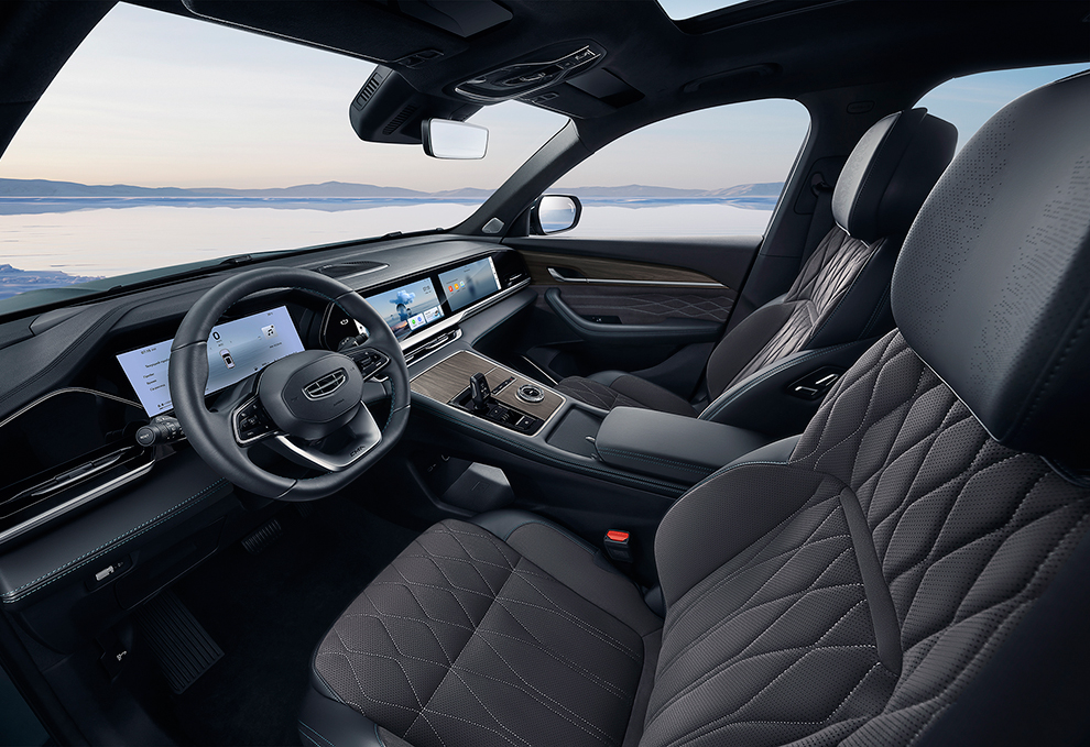 В холодное время года полностью ощущаются преимущества таких опций как подогрев передних и задних сидений, подогрев руля и электроподогрев всей поверхности лобового стекла. Всё это есть в Geely Monjaro. А в жаркое время года водитель и передний пассажир могут быстро освежиться, включив вентиляцию сидений.