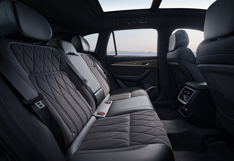 Центральная консоль выполнена в скандинавском стиле с имитацией текстуры дерева. Эргономичный многофункциональный вращающийся селектор, компактный рычаг АКП, площадка для беспроводной зарядки смартфона, расположенная прямо под рукой ближе к водителю – всё продумано для максимального удобства за рулём.